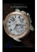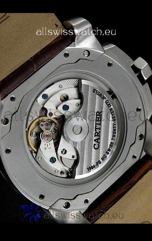 Cartier Calibre de Japanese Replica Steel Watch in Brown Leather Strap