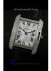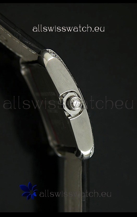 Cartier Louis Japanese Replica Ladies Diamond Watch in Black Strap