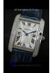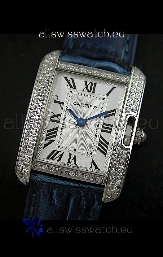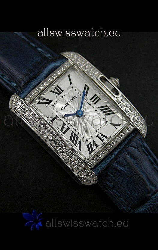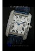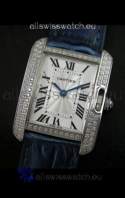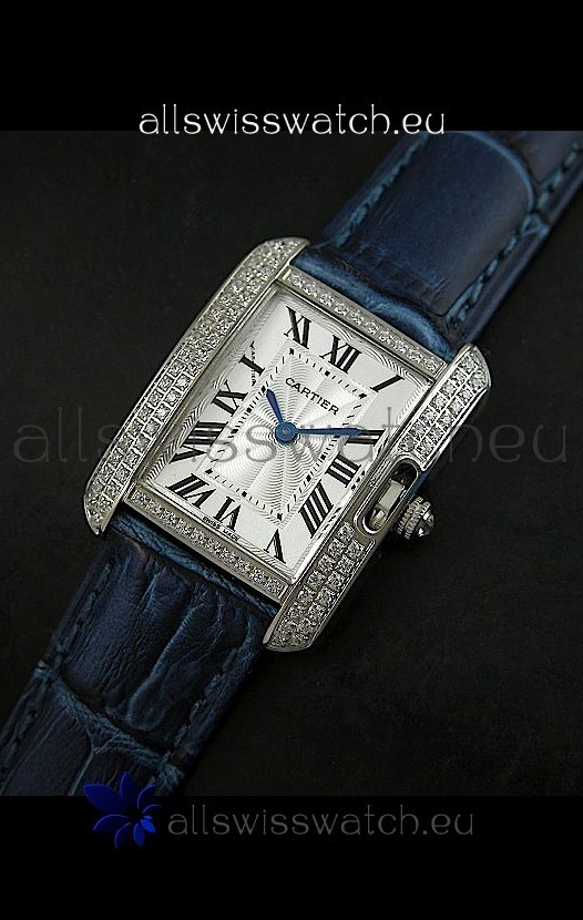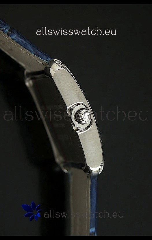 Cartier Louis Japanese Replica Ladies Diamond Watch in Blue Strap