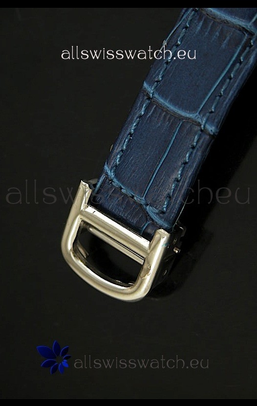 Strap: Genuine Blue Leather Strap with Stainless Steel Tang Buckle