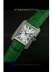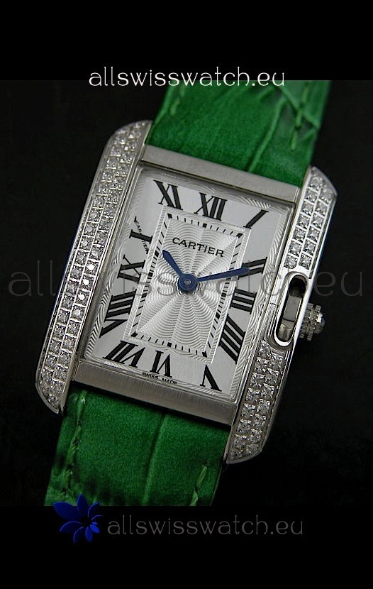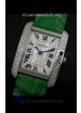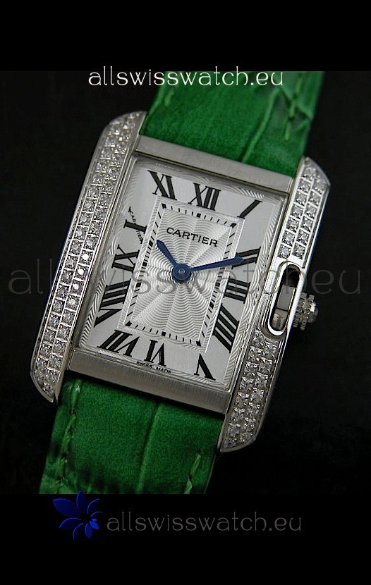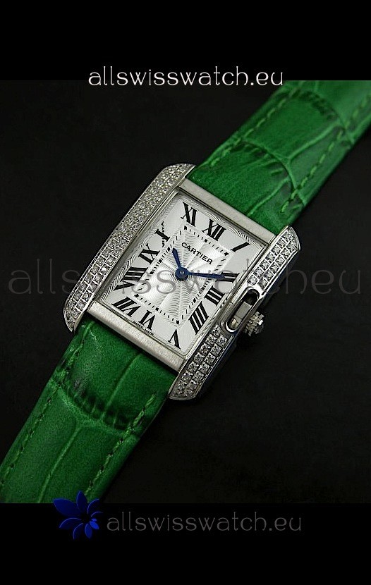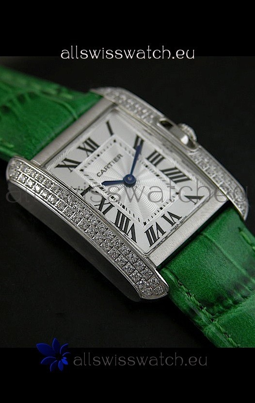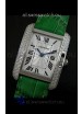 Cartier Louis Japanese Replica Ladies Diamond Watch in Green Strap