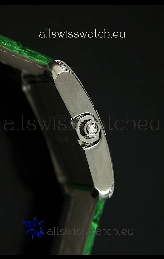 You're reviewing: Cartier Louis Japanese Replica Ladies Diamond Watch in Green Strap