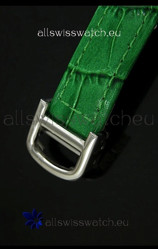 Strap: Genuine Green Leather Strap with Stainless Steel Tang Buckle