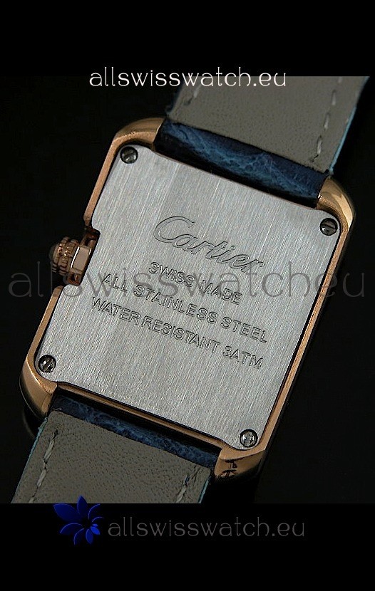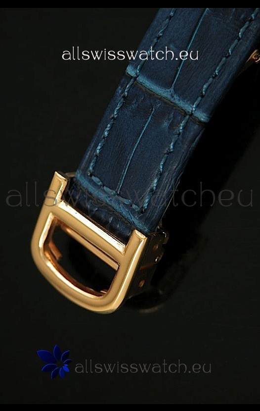 You're reviewing: Cartier Louis Japanese Replica Ladies Rose Gold Diamond Watch in Blue Strap