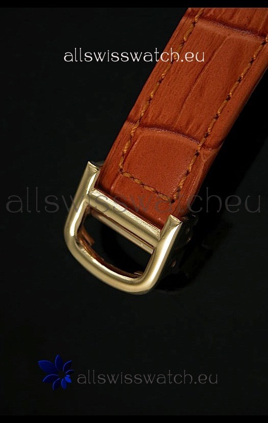 Strap: Genuine Orange Leather Strap with Rose Gold Tang Buckle