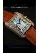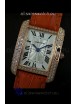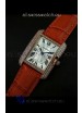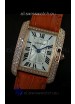 Cartier Louis Japanese Replica Ladies Rose Gold Diamond Watch in Orange Strap