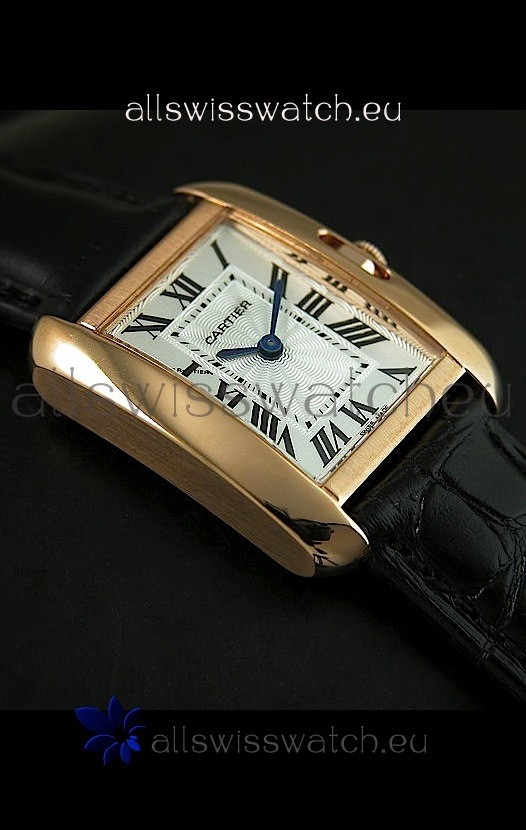 You're reviewing: Cartier Louis Japanese Replica Ladies Rose Gold Watch in Black Strap