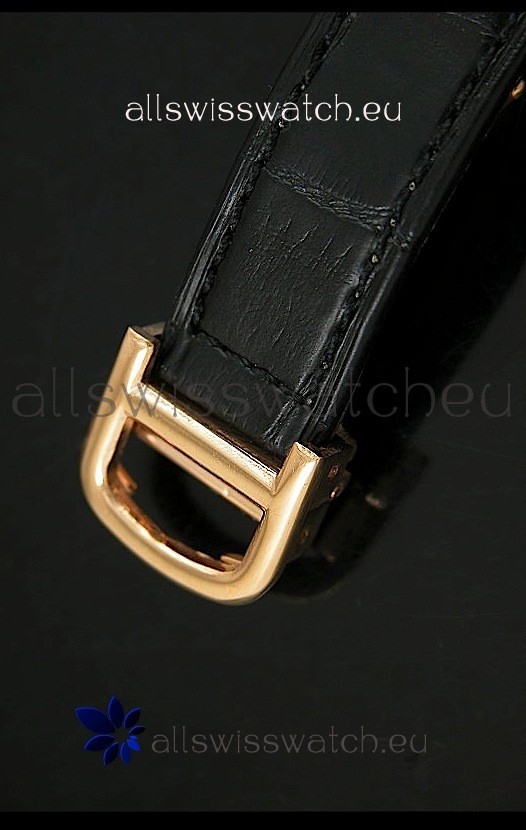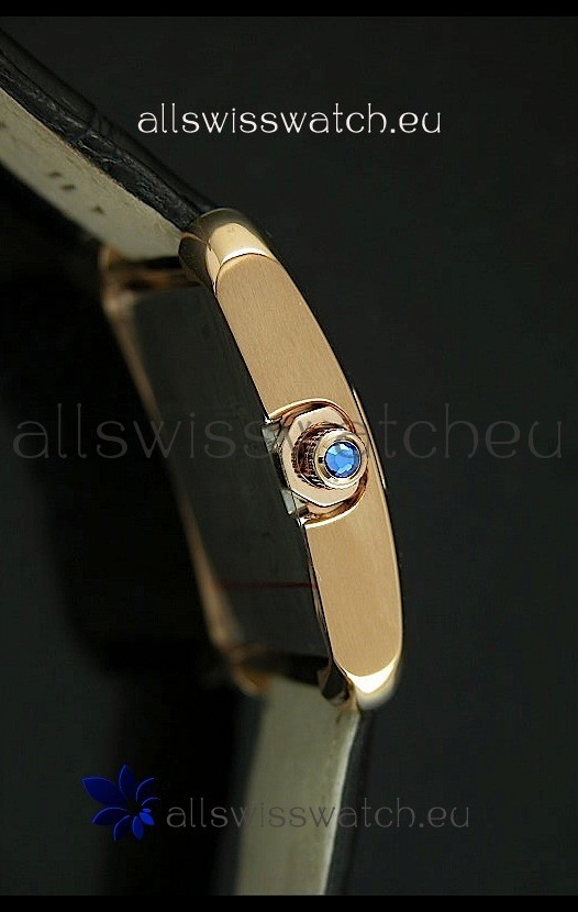 Cartier Louis Japanese Replica Ladies Rose Gold Watch in Black Strap