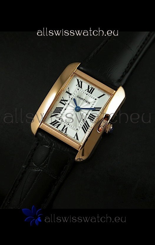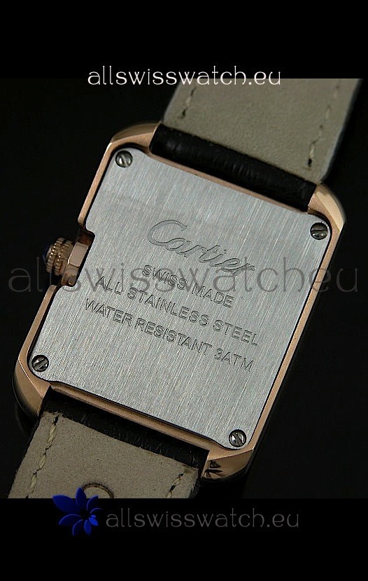 Watch name: Cartier Louis Japananese Replica Ladies Rose Gold Watch in Black Strap