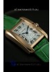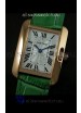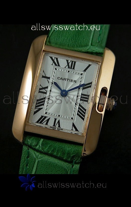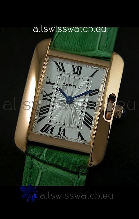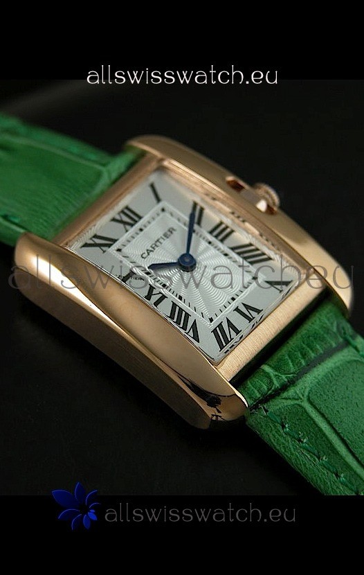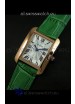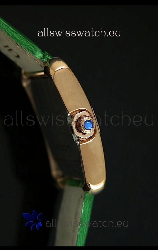 Cartier Louis Japanese Replica Ladies Rose Gold Watch in Green Strap