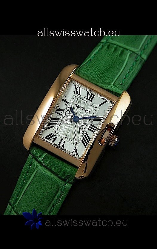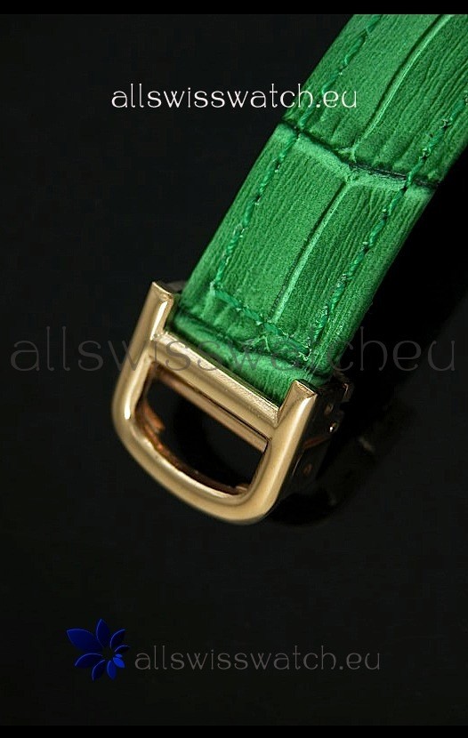 Watch name: Cartier Louis Japananese Replica Ladies Rose Gold Watch in Green Strap