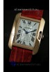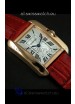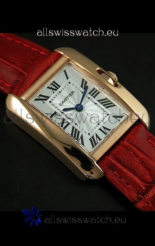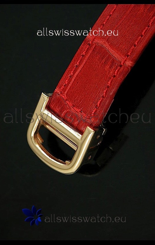 Cartier Louis Japanese Replica Ladies Rose Gold Watch in Red Strap