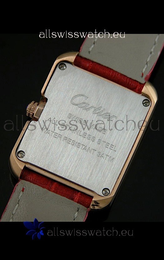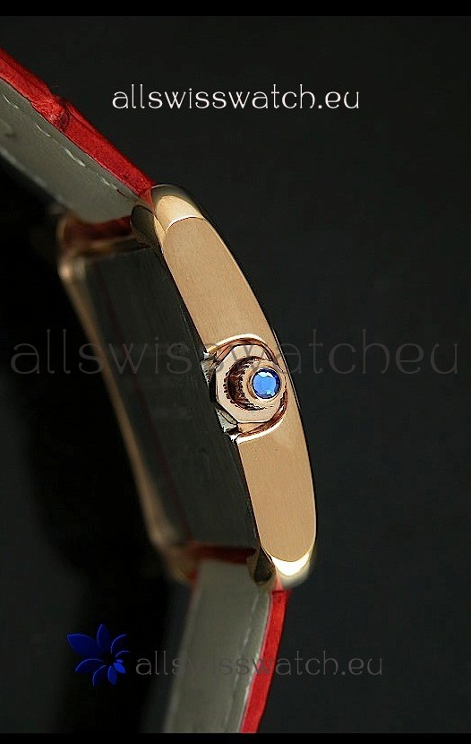 Watch name: Cartier Louis Japananese Replica Ladies Rose Gold Watch in Red Strap