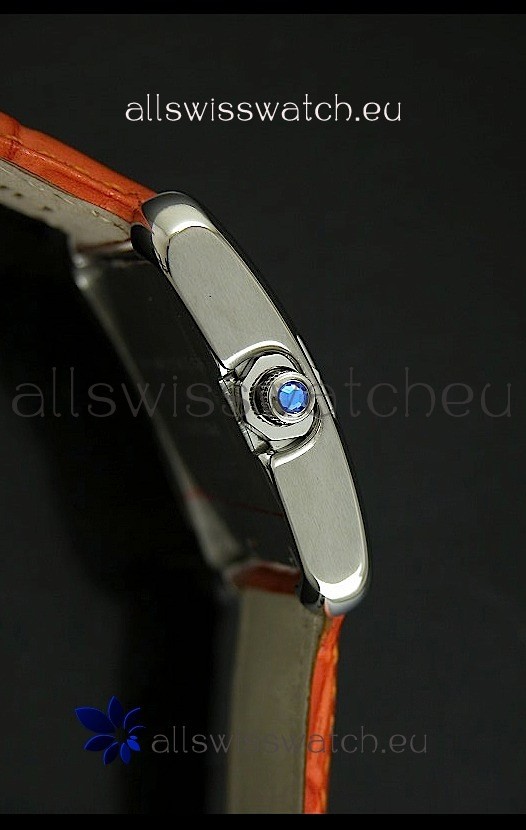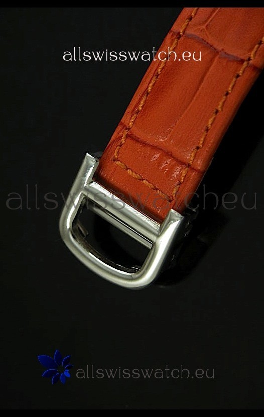 Strap: Genuine Orange Leather Strap with Stainless Steel Tang Buckle