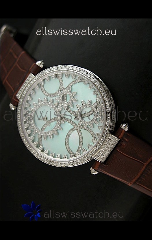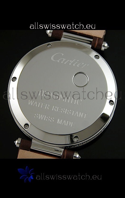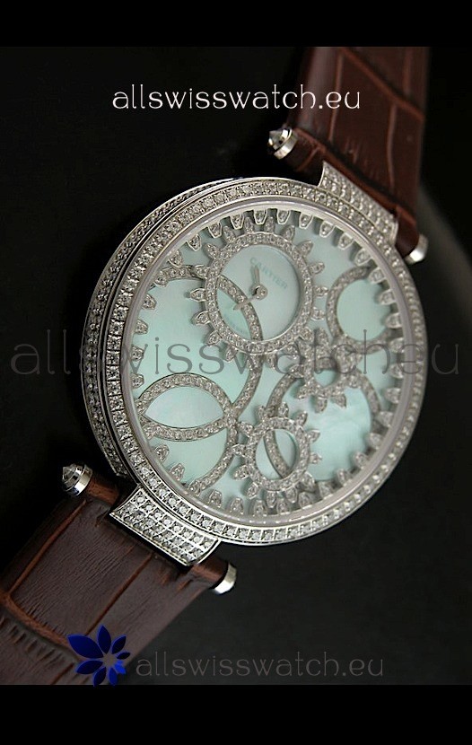 You're reviewing: Cartier Replica Watch with Diamonds Embedded Dial Bezel in Steel Case/Brown Strap