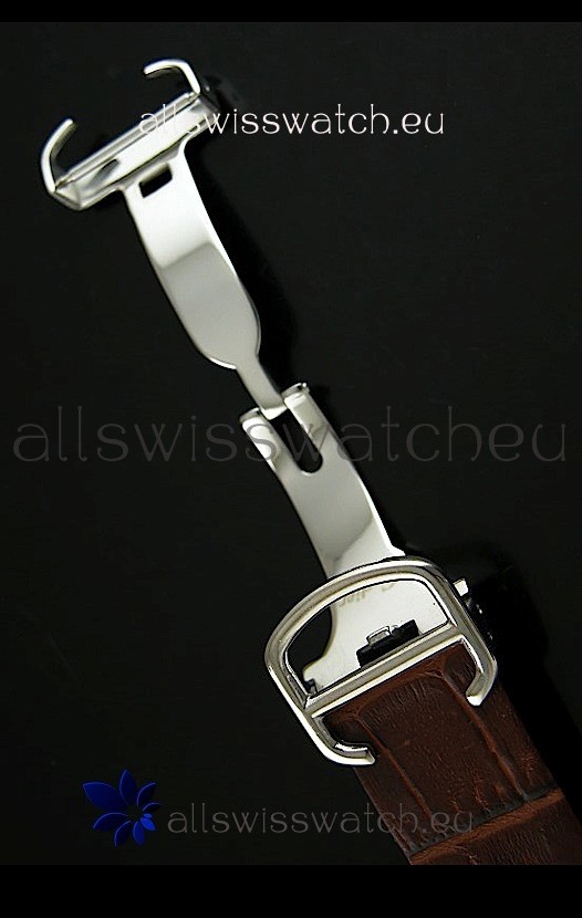Genuine Leather Strap with Cartier Markings/Engravings and Double Folding Clasp