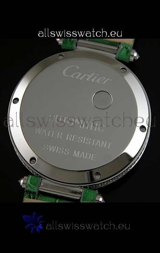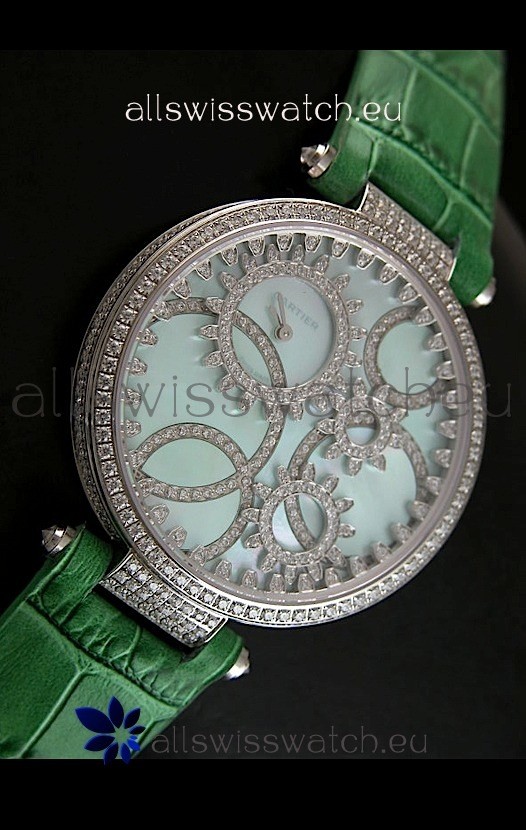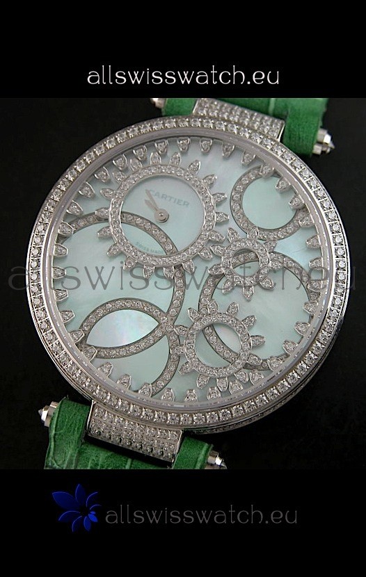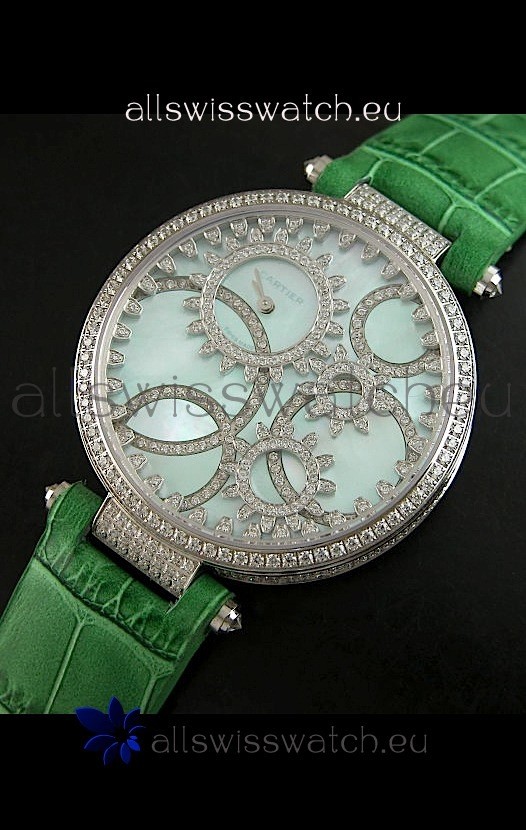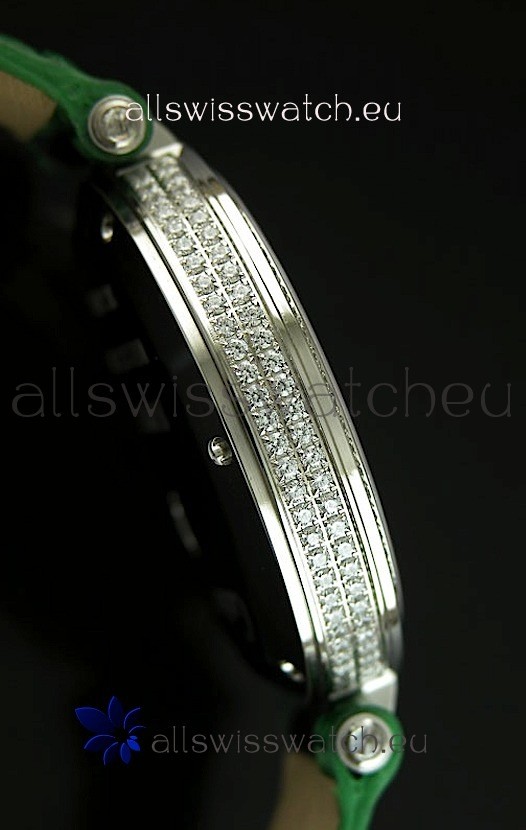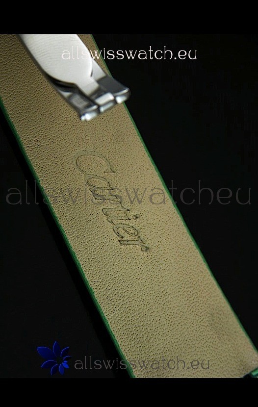 You're reviewing: Cartier Replica Watch with Diamonds Embedded Dial Bezel in Steel Case/Green Strap