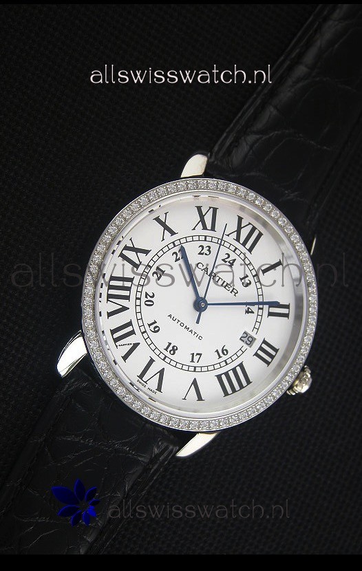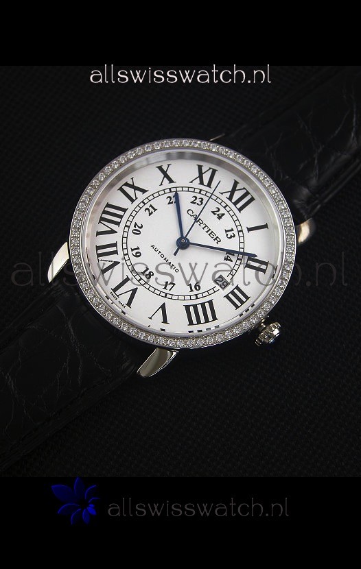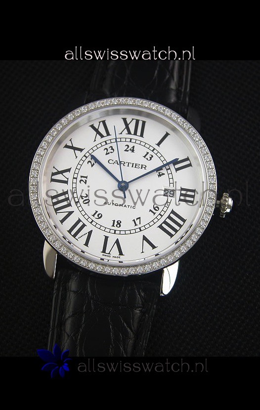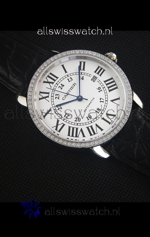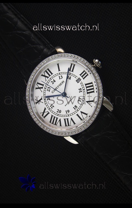 Cartier "Ronde De Cartier" Stainless Steel Case watch with Lab Created Diamonds Bezel