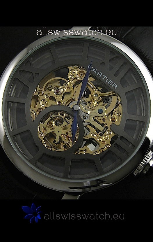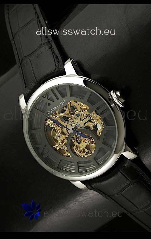 Watch name: Cartier Ronde de Japanese Replica Watch in Skelton Grey & Gold Dial