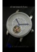 Cartier Ronde de Tourbillon Japanese Replica Diamond Watch in Black Strap