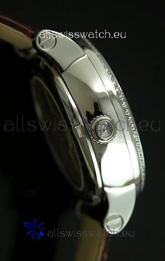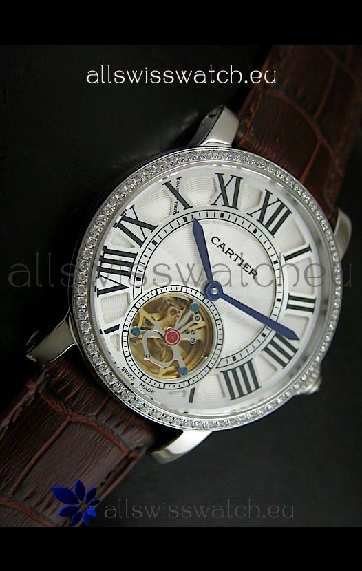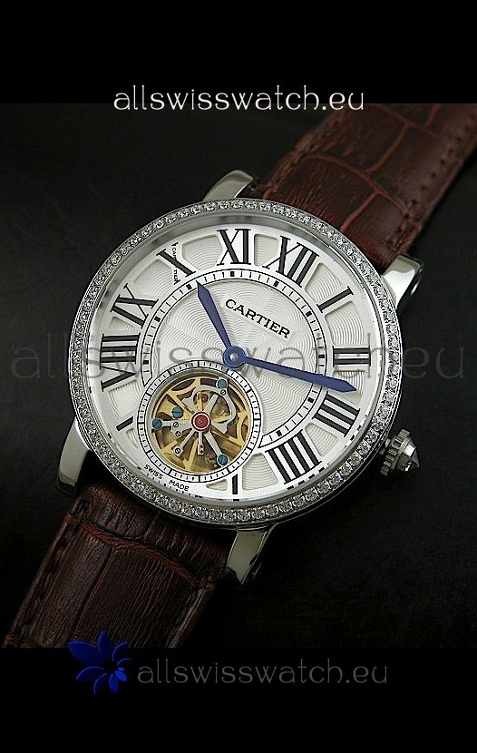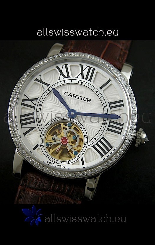 Watch name: Cartier Ronde de Tourbillon Japanese Replica Diamond Watch in Brown Strap