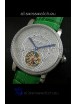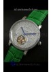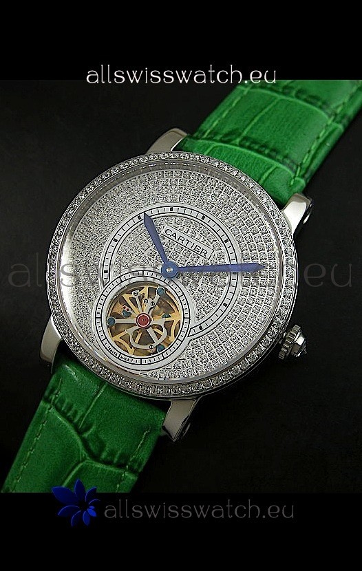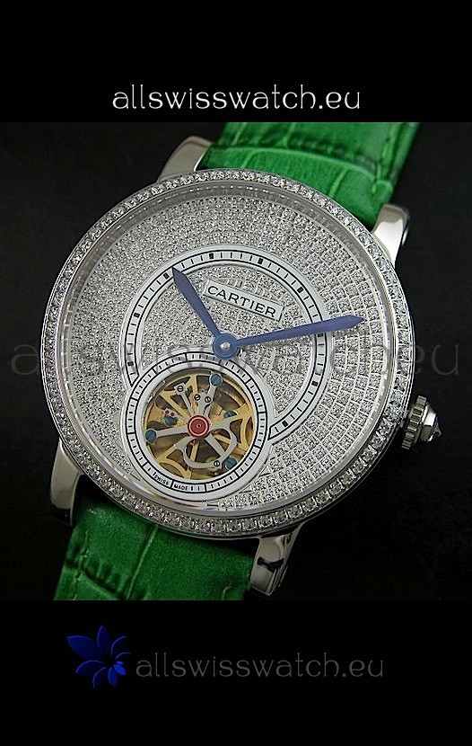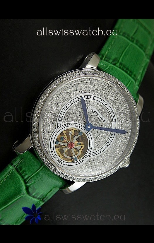 Cartier Ronde de Tourbillon Japanese Replica Diamond Watch in Green Strap