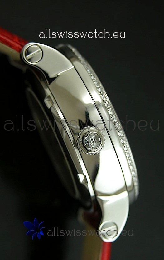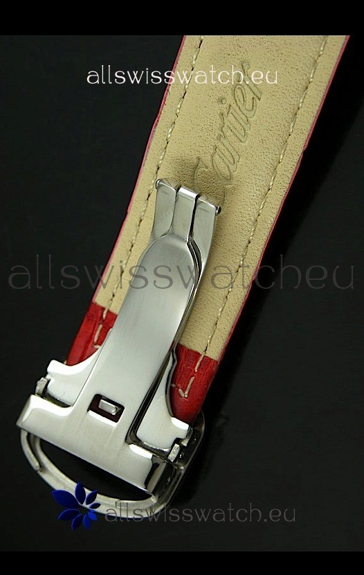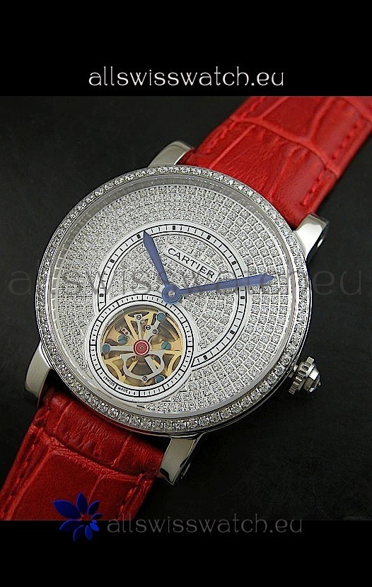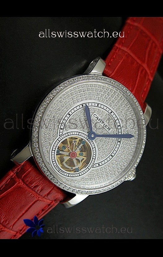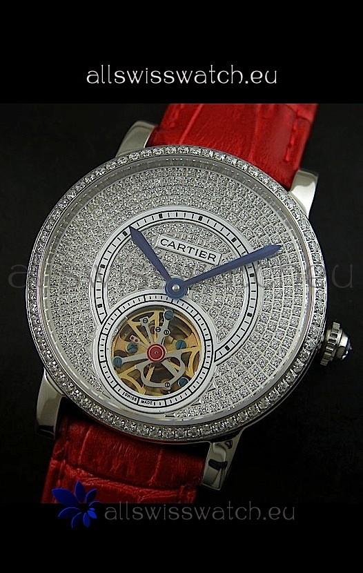 Watch name: Cartier Ronde de Tourbillon Japanese Replica Diamond Watch in Red Strap