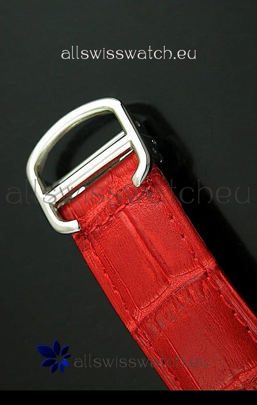 Strap: Genuine Red Leather Strap with Stainless Steel Deployment Clasp