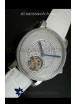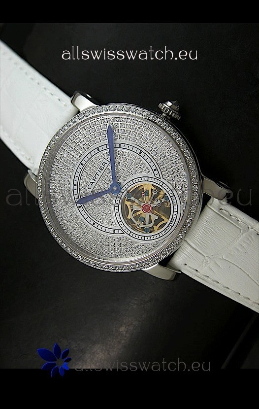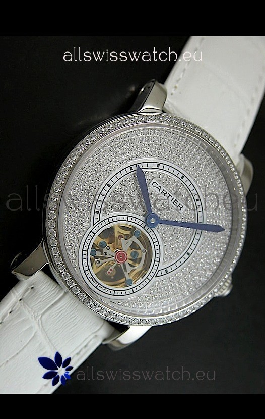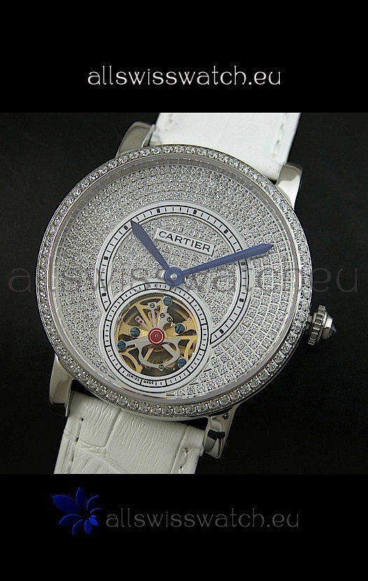 Watch name: Cartier Ronde de Tourbillon Japanese Replica Diamond Watch in White Strap