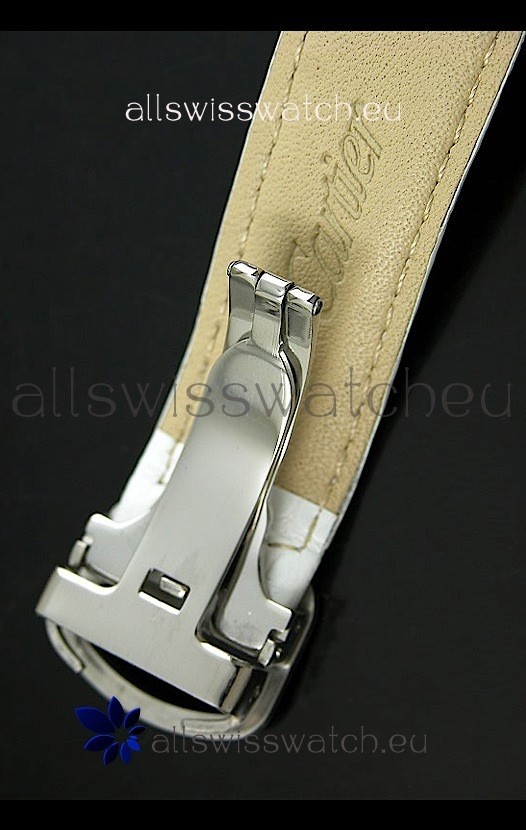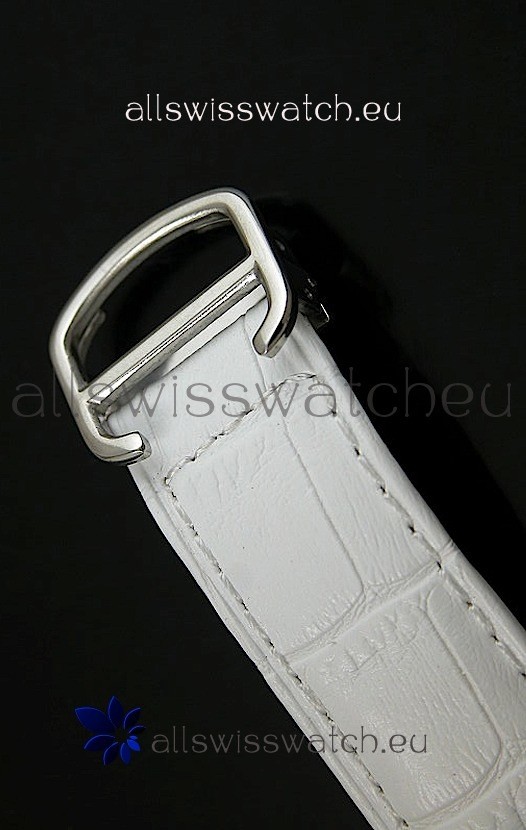Strap: Genuine White Leather Strap with Stainless Steel Deployment Clasp
