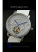 Cartier Ronde de Tourbillon Japanese Replica Diamond Watch in White Strap