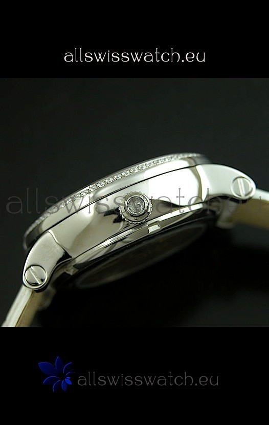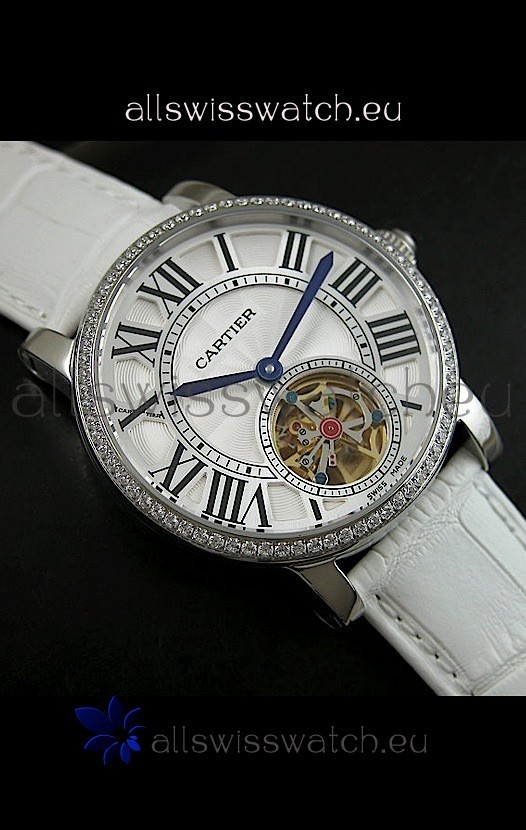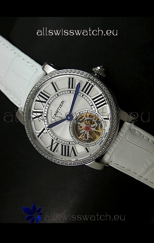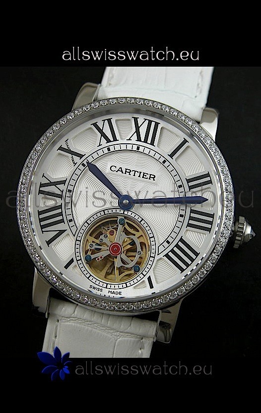 Watch name: Cartier Ronde de Tourbillon Japanese Replica Diamond Watch in White Strap