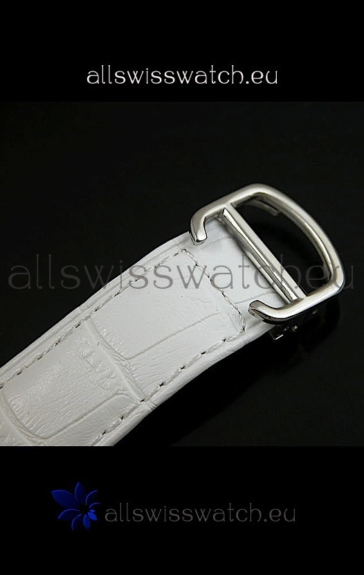 Strap: Genuine White Leather Strap with Stainless Steel Deployment Clasp