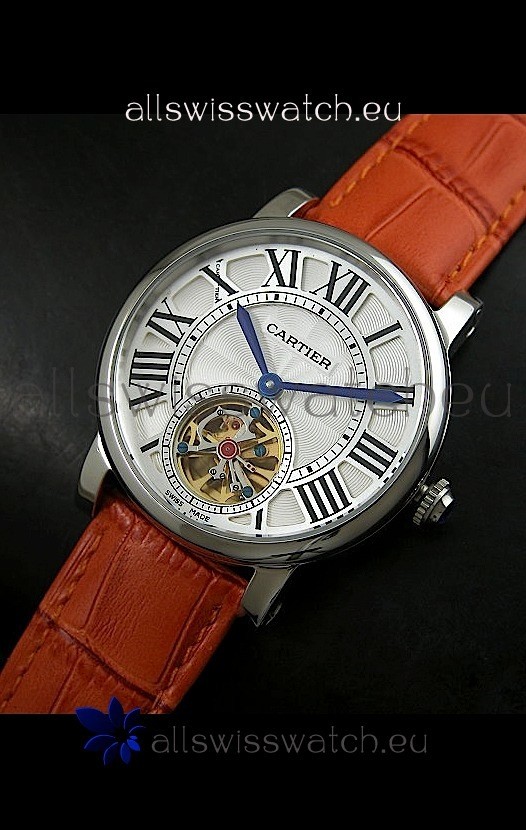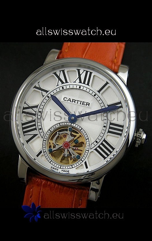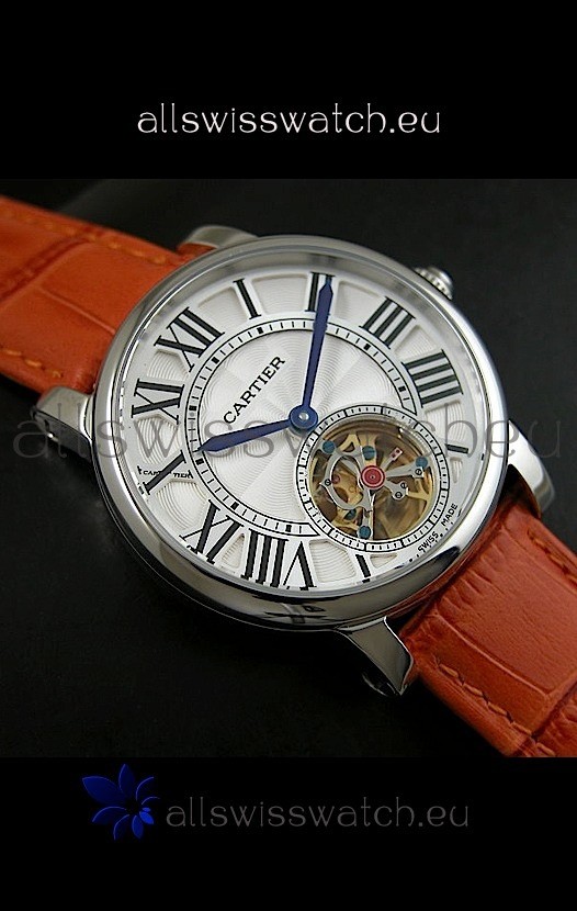 Watch name: Cartier Ronde de Tourbillon Japanese Replica Watch in Brown Strap