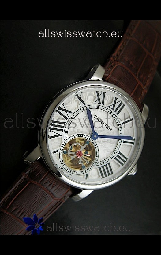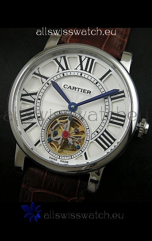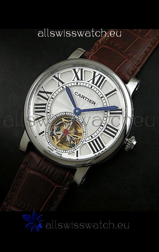 Watch name: Cartier Ronde de Tourbillon Japanese Replica Watch in Brown Strap