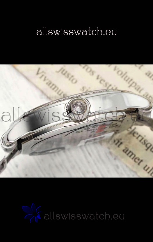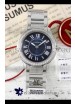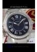 Blue Dial with Roman Hour Numerals. Diamonds Paved Bezel