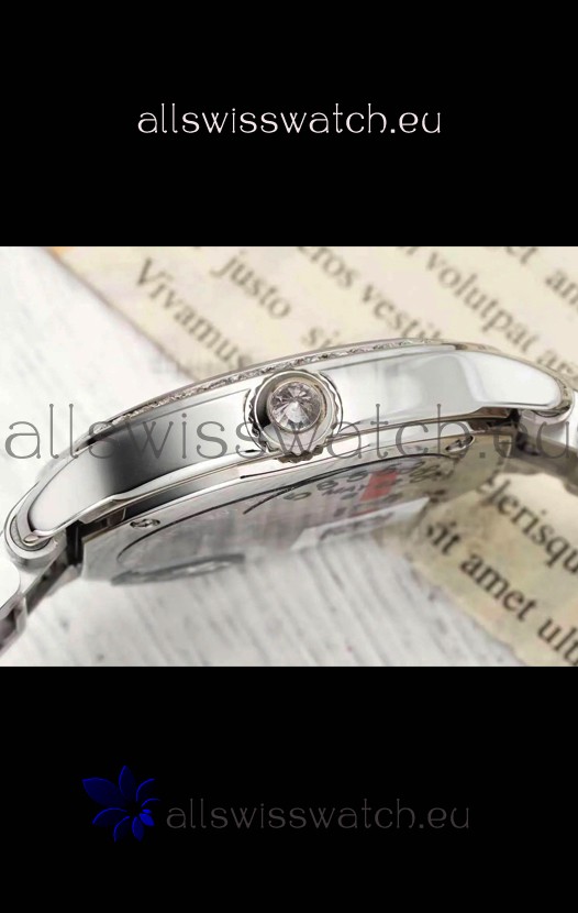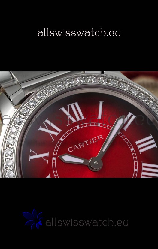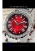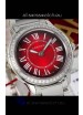 Red Dial with Roman Hour Numerals. Diamonds Paved Bezel