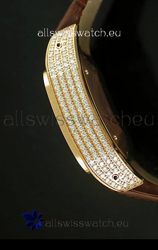 5MILL Thick Plated Pink Gold Casing with High Quality Diamonds Encrusted into Dial