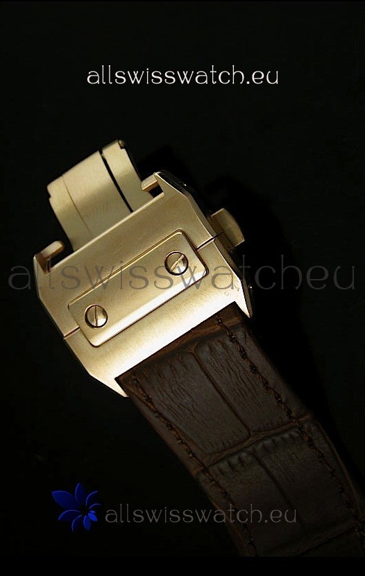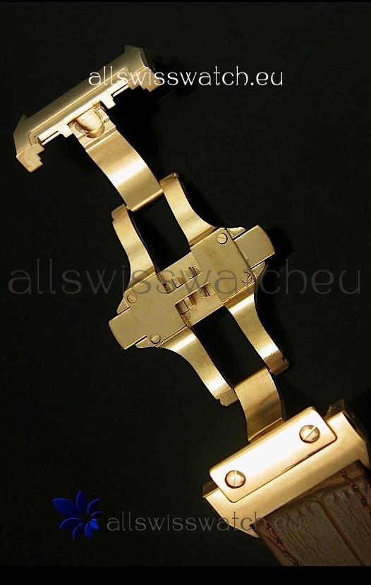 Genuine Leather Strap with Double Folding Clasp stamped with Cartier Markings and Engravings exactly like the Authentic