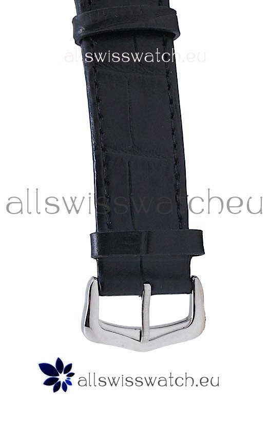 Strap: Black Leather Strap with Cartier Markings and Engravings