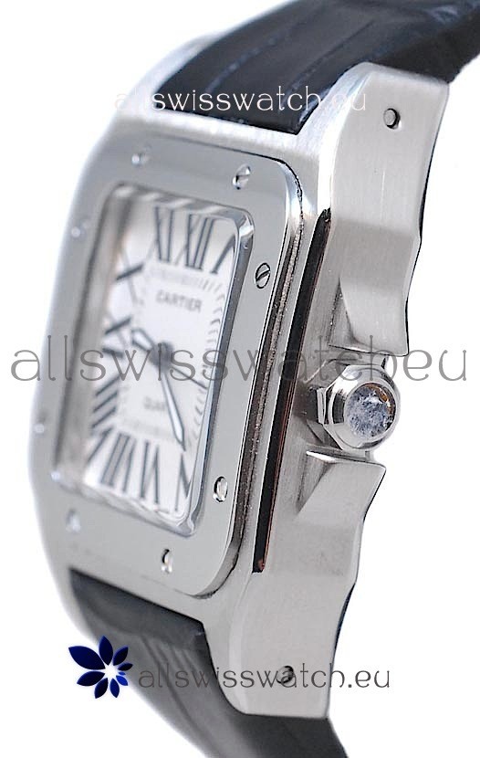 You're reviewing: Cartier Santos 100 Japanese Ladies Replica Watch in Black Leather Strap