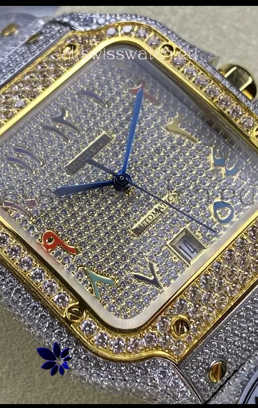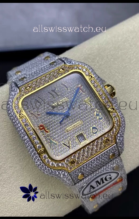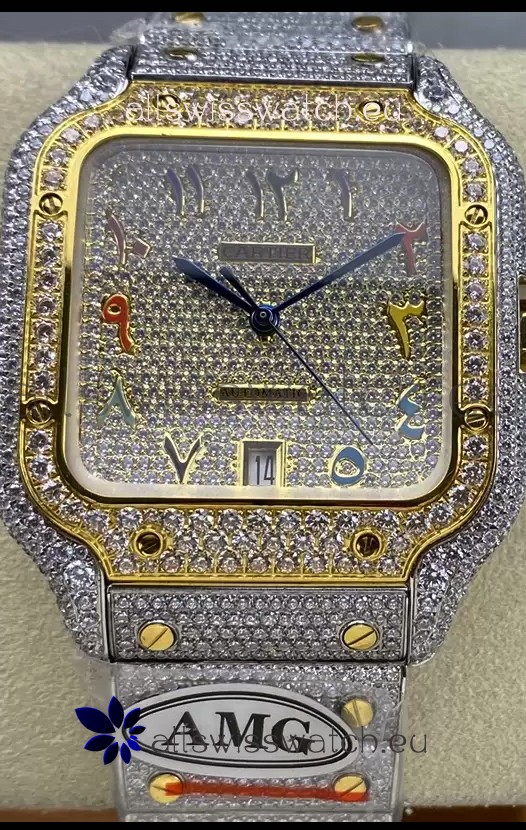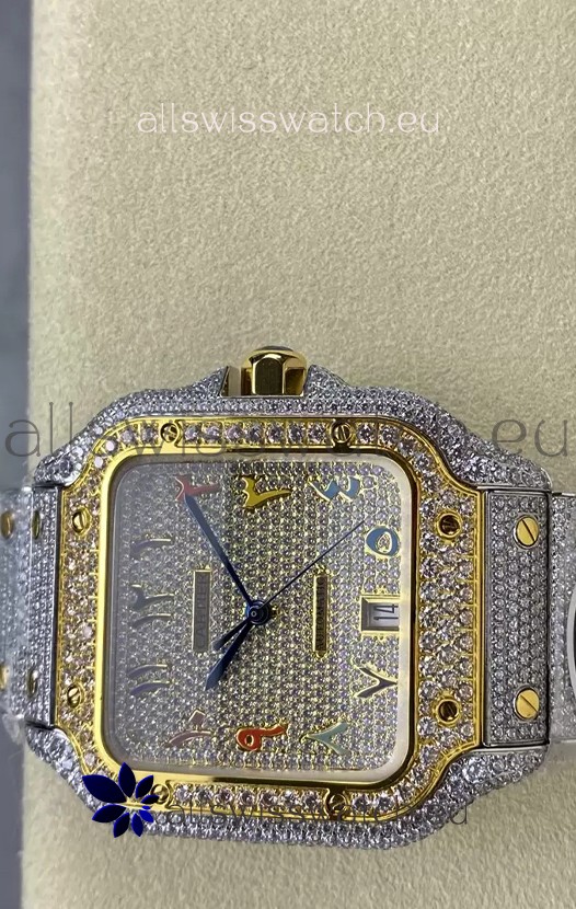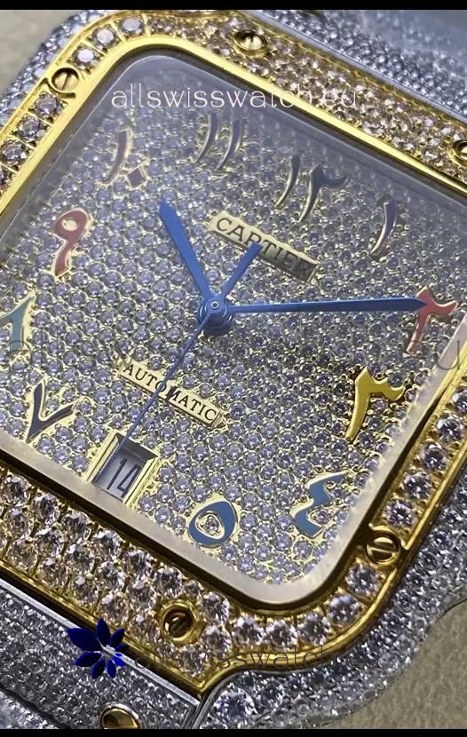 Cartier "Santos De Cartier" 904L Steel Diamonds Colored Arabic Dial 1:1 Mirror Replica - 40MM - Genuine Diamonds