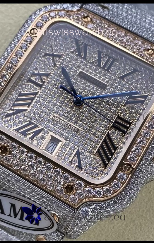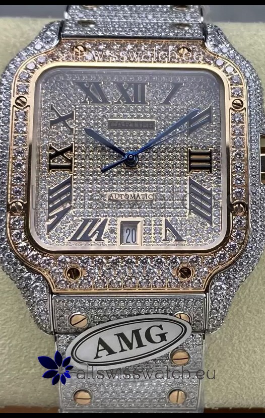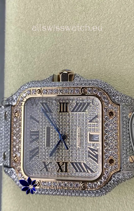 Cartier "Santos De Cartier" 904L Steel Diamonds Dial 1:1 Mirror Replica - 40MM - Genuine Diamonds