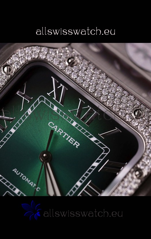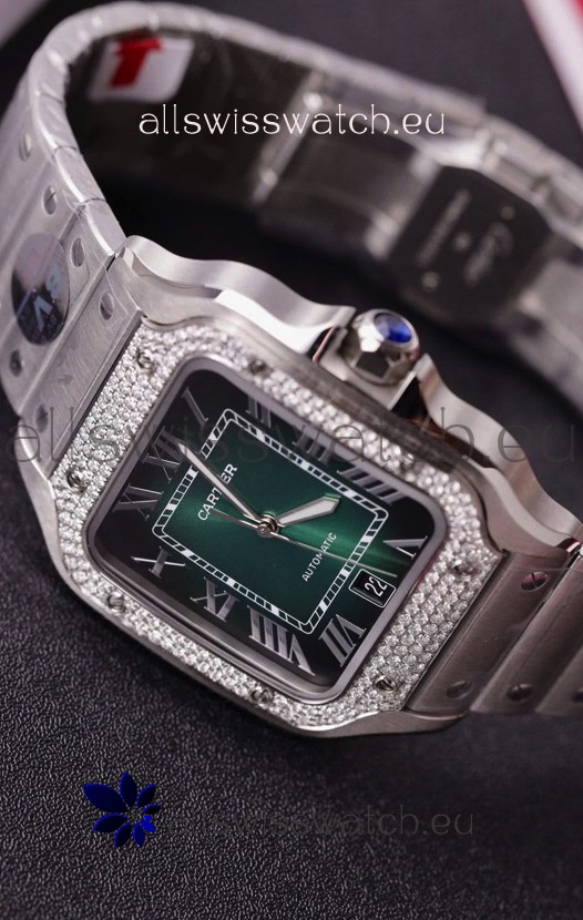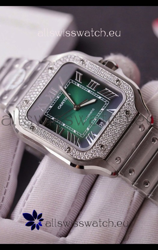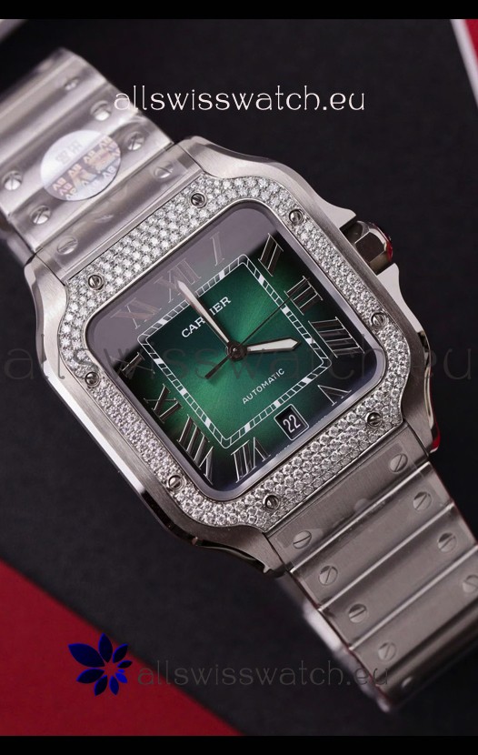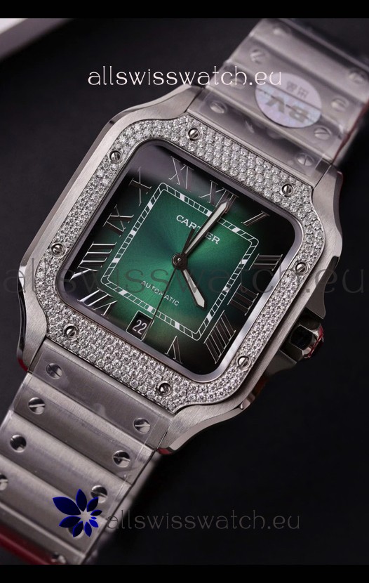 Cartier Santos De Cartier 904L Steel Green Dial Super Clone Replica 40MM Watch