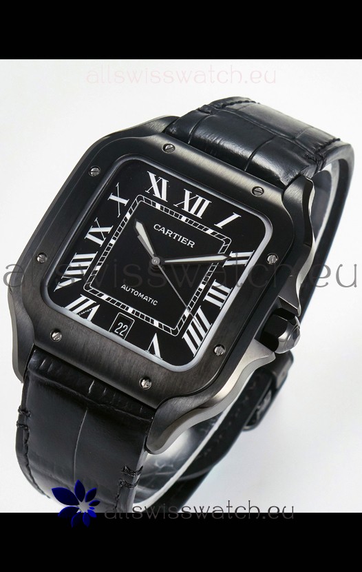 Cartier Santos De Cartier DLC Coating on Steel Black Dial Super Clone Replica 40MM Watch
