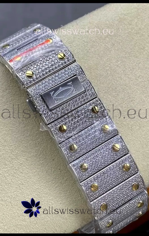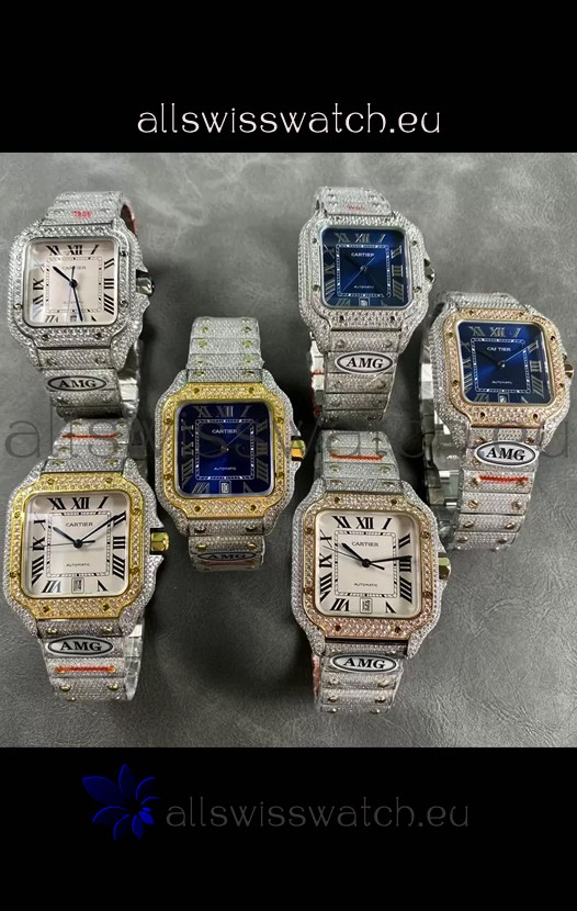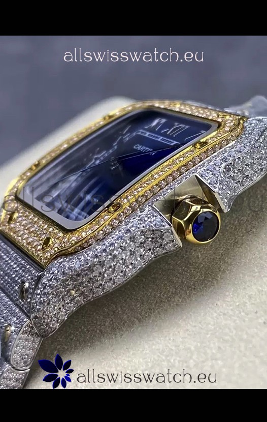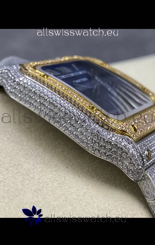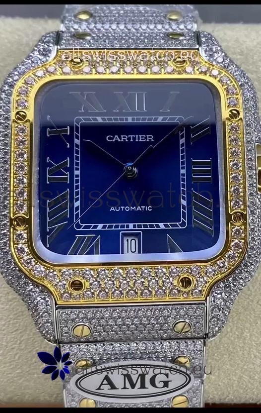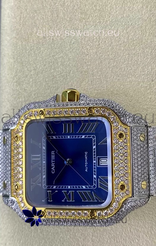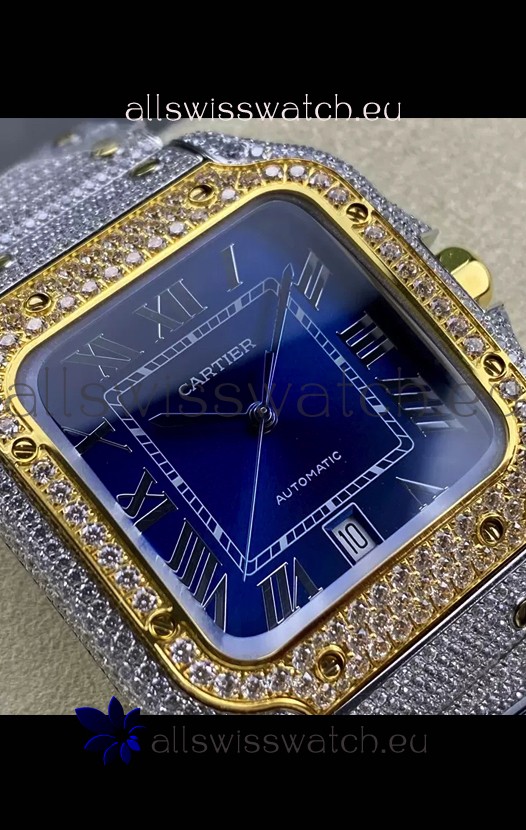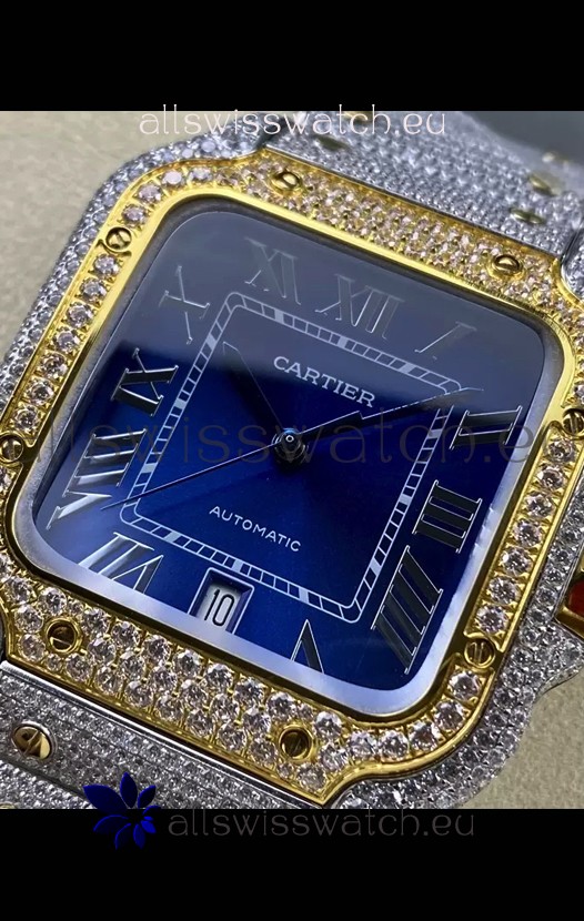 Cartier "Santos De Cartier" 904L Steel Two Tone Blue Dial 1:1 Mirror Replica - 40MM - Genuine Diamonds