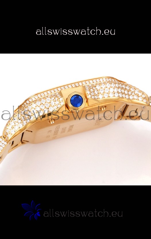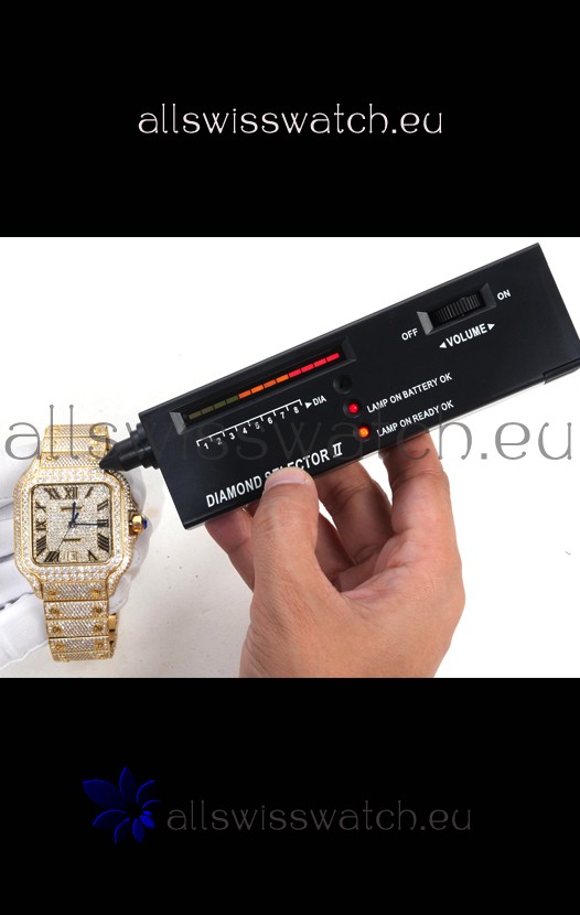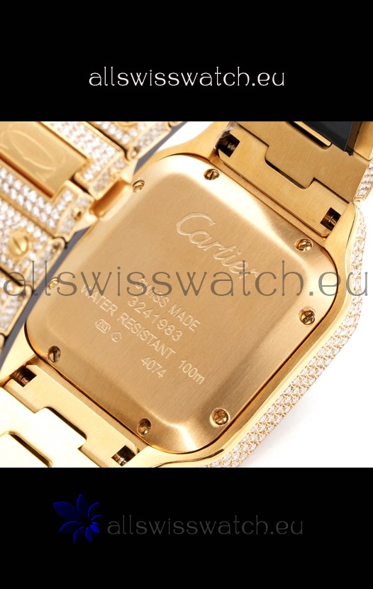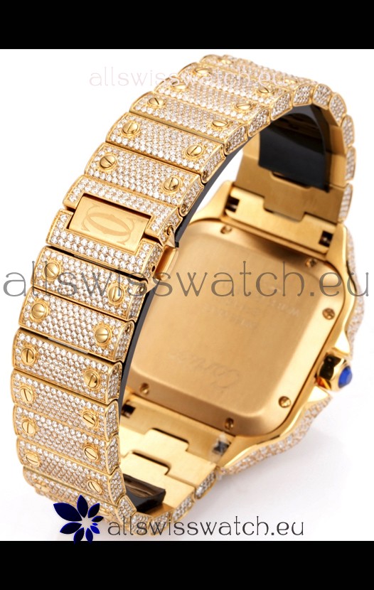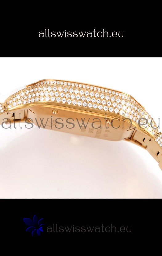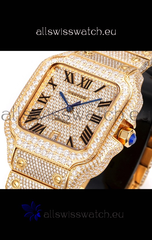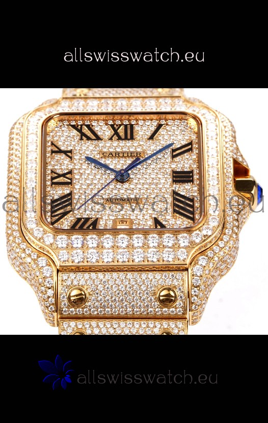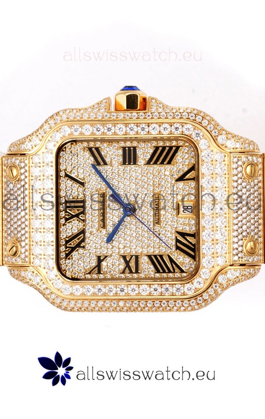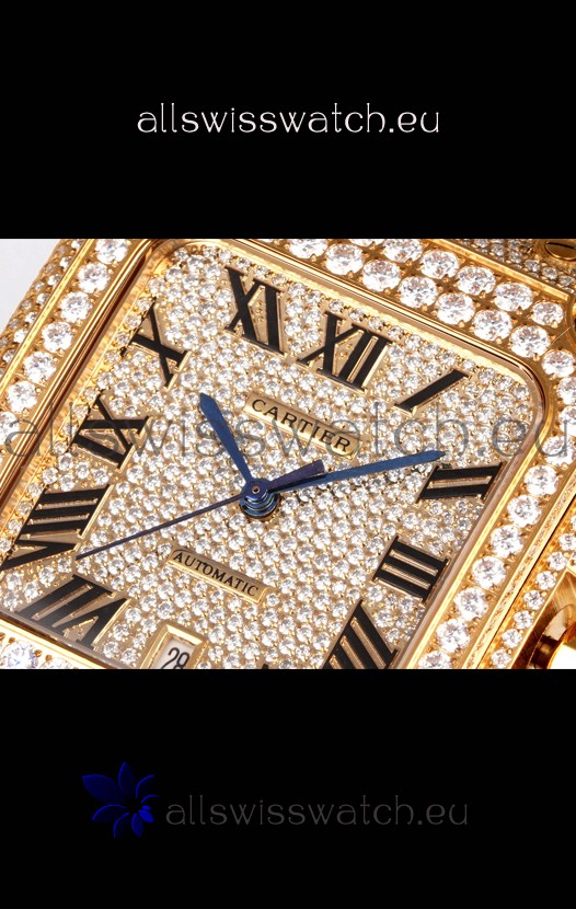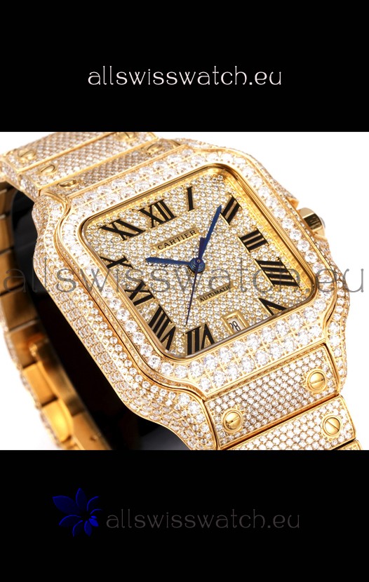 Cartier "Santos De Cartier" Yellow Gold W/ Diamonds Roman Dial 1:1 Mirror Replica - 40MM - Genuine Diamonds