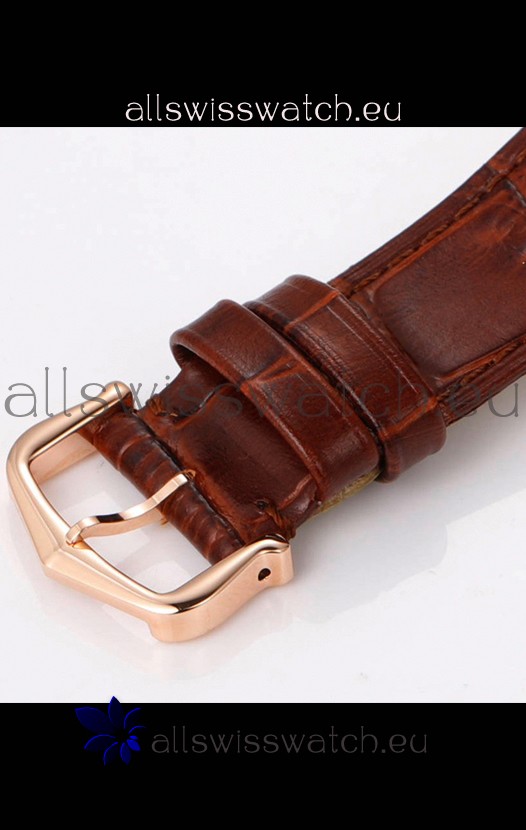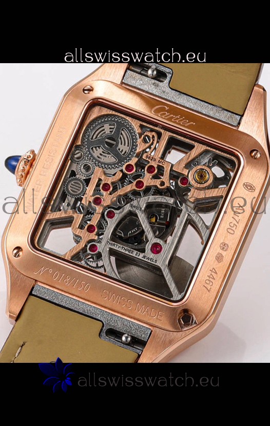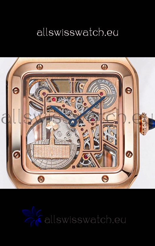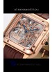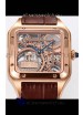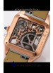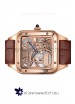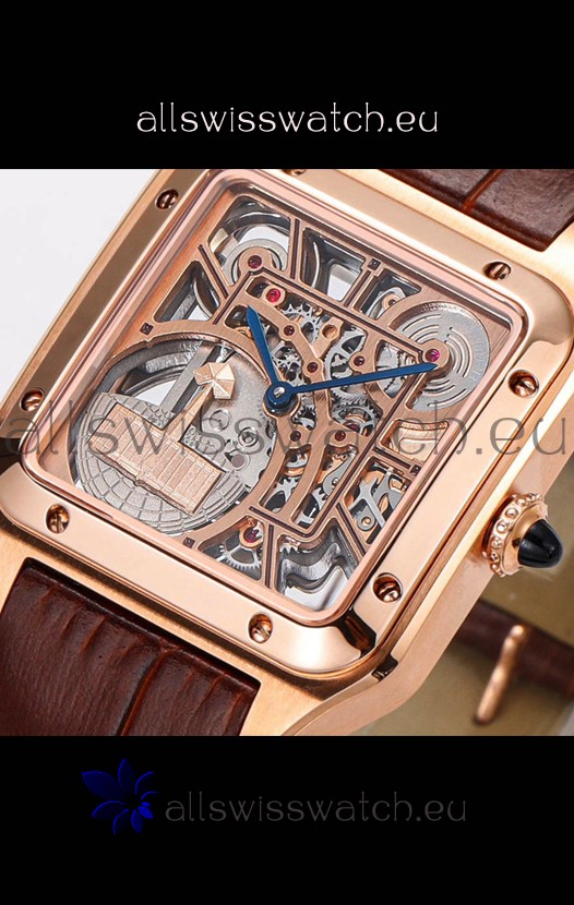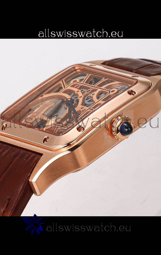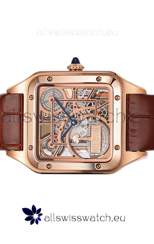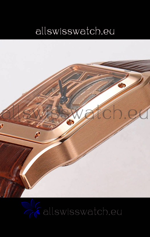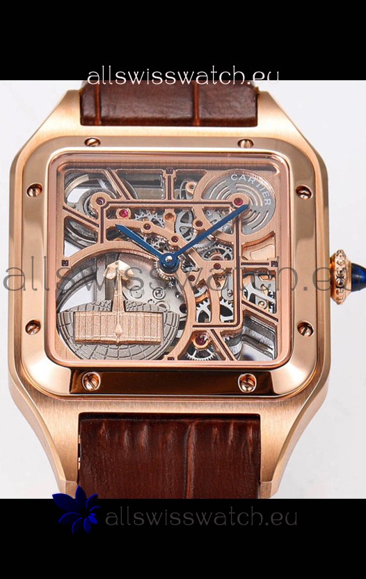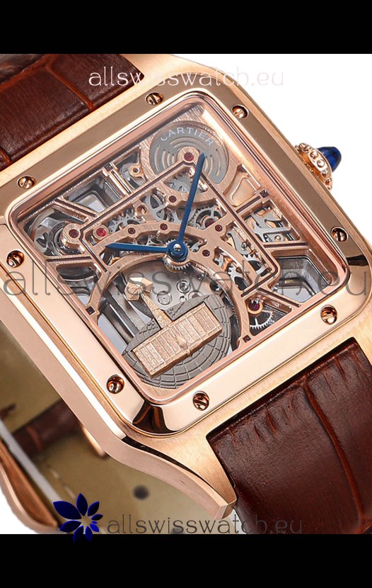 Cartier Santos Dumont Skeleton Rose Gold Watch in Brown Leather Strap 43.5MM