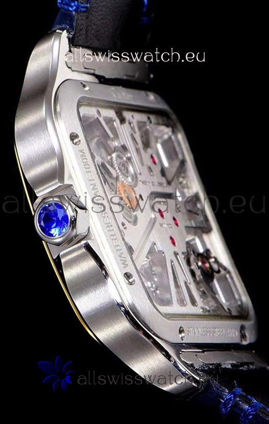 Skeleton See-Through Dial with Blue Sapphires Tip Stem