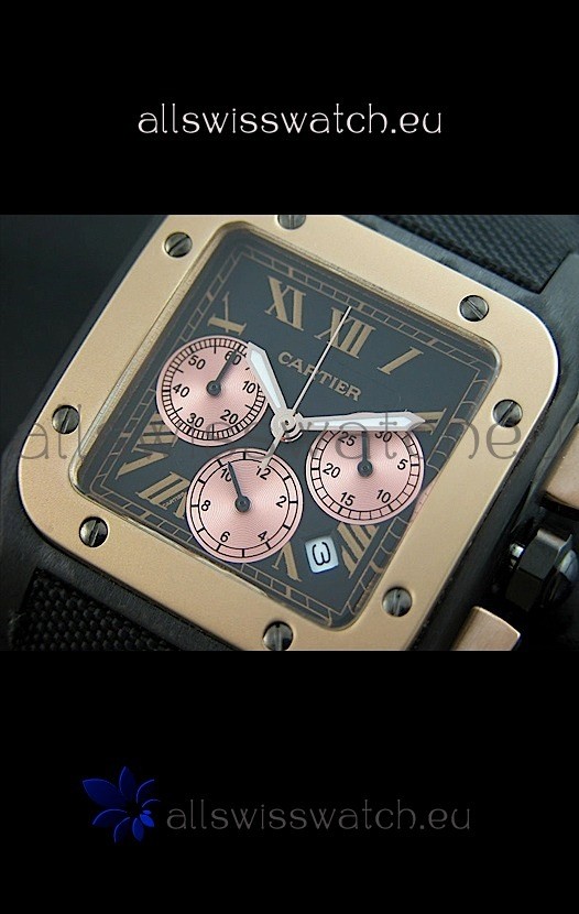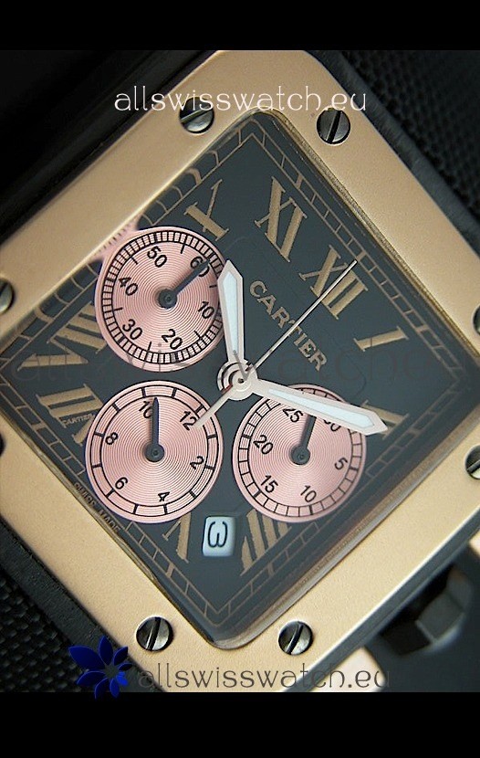 Function: Hour, Minute, Second, Date Display, Three Pink Gold Subdials, Roman Markers and Full Functional Chronograph